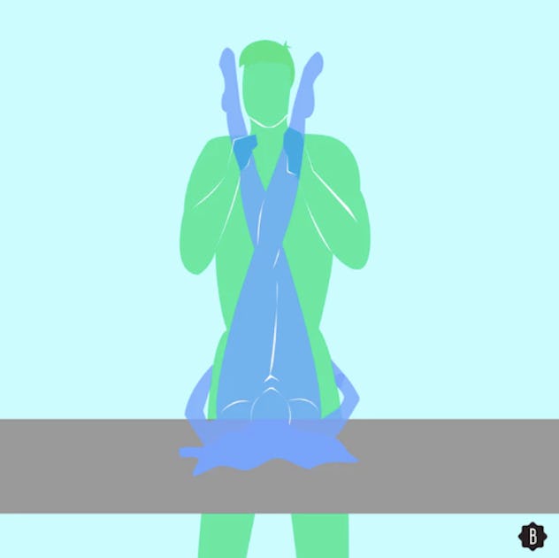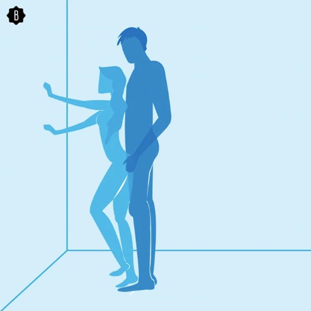 කරන විදිය: මේ position එකට ඔයාට flat surface එකක් තෝරගෙන ඒකේ හාන්සි වෙලා ඉන්න ඕන. ඔයාගේ partner ට standing position එකක ඉඳන් penetrate කරන්න පුළුවන්. ඔයාගේ කකුල් දණහිස් වලින් හෝ වළලුකර වලින් cross කරලා තියා ගන්න.